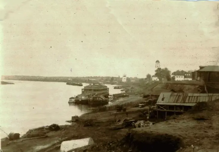 Когда вы приближаетесь на пароходе к самой Тотьме, спускаясь вниз по течению реки, то первое, что обратит на себя ваше внимание, это рыбацкая Зеленская слобода. Фарватер реки здесь проходит возле самого берега, по которому раскинулась слобода, и вы с палубы парохода спокойно можете осмотреть и даже сосчитать все домишки слободы. Пройдя слободу, против устья речки Песьи Деньги пароход делает поворот к правому берегу, и в это время перед вами откроется панорама всего города с его церквами и деревянными домиками, утопающими в зелени. На первом плане вы видите церковь на горе, отделенной от города рвом, затем бульвар, опять церковь, возле нее другой ров или ручей, за ним белые стены как бы крепости, далее второй бульвар... Вы не видите над городом ни дыму, ни высоких заводских и фабричных труб, ни оживленного движения и не слышите ни шуму, ни грохоту, свойственного промышленным городам. Все это с первого взгляда и создает у вас представление о Тотьме как старинном и патриархальном городке. И действительно, вы не ошиблись и в этом вполне можете убедиться, если уделите несколько часов на прогулку по городу.
