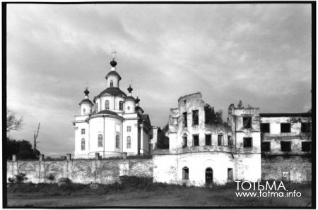 Монастырь все еще находится в сильно разрушенном состоянии на западной окраине Тотьмы. Первая каменная церковь, освященная во имя Преображения Господня, была построена в 1680-е годы. Однако первое строение не сохранилось и давно исчезло под более поздними перестройками. Другая церковь. Успения Божией Матери, была построена в 1870 г. над массивной восточной стеной-террасой. Теперь от нее остались только разрушенные стены с фрагментами апсидной части