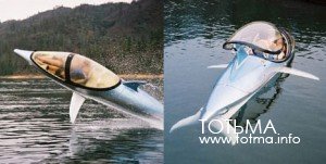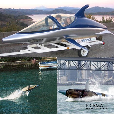 Трудно сказать, сколько в этом бионики, то есть попытки реально использовать динамические свойства дельфиньего тела, а сколько чиста дезигна, т.е. желания сделать красивую штучку. Независимо от замыслов, получилось, похоже, и то, и другое. Глиссер дико красив и быстро катается, имея возможность, натурально, по-дельфиньи играть в волнах, помахивая плавничком. Корпус хреновины сделан из поликарбоната толщиной всего в три четверти дюйма. Мотор при этом очень мощный. А это значит, что глиссер-дельфин развивает такую нехилую скорость, что можно даже пилотский фонарь до конца не закрывать - и ушей не намочить. Если, конечно, не поныривать и не вертеться в воде, как настоящий дельфин. Эта штука всё это умеет. Ну, в общем, на видео увидите. Первый такой дельфинчег был построен компанией Innespace в 2001 году, назывался Innespace Dolphin и был одноместным. Новая версия называется Innespace Sea Breacher. В ней два места. Рыбу оно не ест.