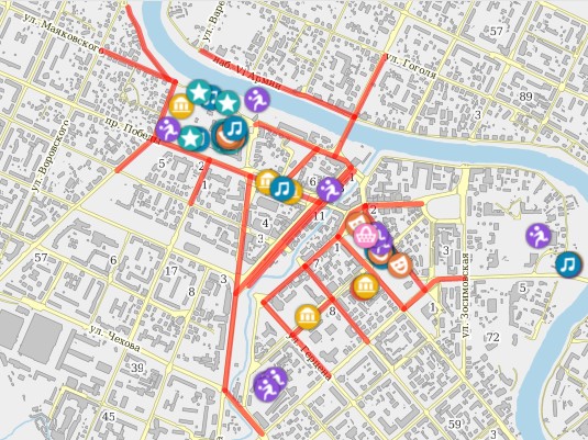 по улице Чехова, на участке от улицы Мира до улицы Предтеченской;