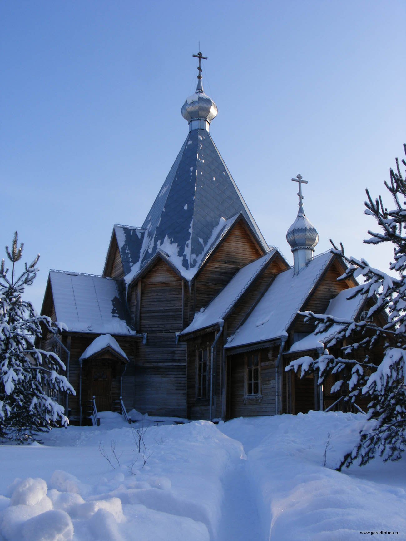 Стоял морозец, было ясное голубое небо и чистый морозный воздух, когда приехали в посёлок газовиков. Народа было не много но не большой храм был полон.