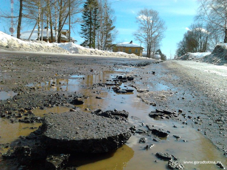 В нашем районе более 650 километров автомобильных дорог областного и межмуниципального значения. В разрушенном состоянии находятся участки не только асфальтовых, но и грунтовых дорог. С 1998 года на них не проводилось ни одного ремонта, за исключением редких подсыпок проблемных участков. В 2007 году сдана в эксплуатацию дорога Сафониха – Великий Двор, в 2010 – Аникин Починок – Гремячий. Грунтовые дороги у нас распространены, ведь ими пользуются жители сёл и деревень нашего района. А о том, как ремонтируются и строятся внутримуниципальные дороги – все мы видим. Местами по нашим деревням и на вездеходе не проехать, не говоря уже про обычный транспорт. К примеру, на маршрутах «Тотьма – Еденьга» Тотемское пассажирское автотранспортное предприятие регулярно ломает транспорт – несколько автобусов вышли из строя только в этом году, настолько плоха дорога. А в большинстве ДТП на автодорогах района причиной стала также плохое состояние дороги (сопутствующий фактор).