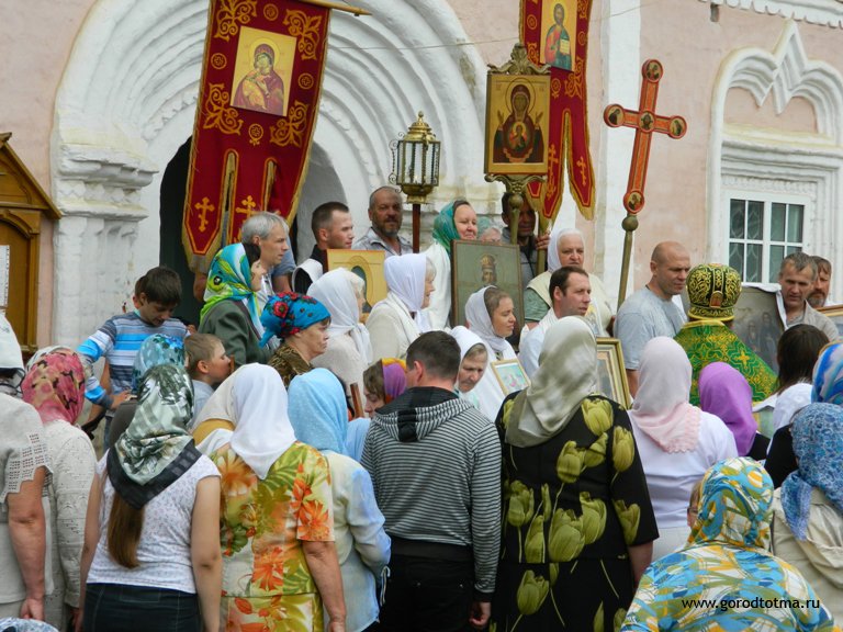В Тотьме прошёл крестный ход, посвящённый Дню всех святых Вологодских. Собор Вологодских святых — праздник Русской православной церкви в честь святых, связанных с Вологдой. Из-за административно-территориальных изменений в Собор также вошли святые земель, не входящих в современную Вологодскую область (сейчас относящихся к Архангельской, Пермской областям и Республике Коми). Празднование совершается в 3-ю неделю (воскресение) по Пятидесятнице. В честь праздника ещё в прошлом году в Тотьме возродили Крестные ходы, в своё время они проводились каждый год в этот праздник. После службы в храме прихожане с иконами и хоругвями прошли вокруг города, где останавливались, а отец Георгий (Титов) освещал Тотьму. По пути шествования возносились молитвы вологодским святым, в том числе и тотемским: преподобному Феодосию Суморину, Андрею Христа ради юродивому, Максиму праведному, Вассиану Тиксненскому.