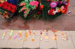 Участники митинга выложили из зажженных свечей слово ПАМЯТЬ у подножия мемориала. Минутой молчания почтили павших в борьбе с фашизмом, погибших в военное время и ушедших из жизни в уже мирное время ветеранов.
