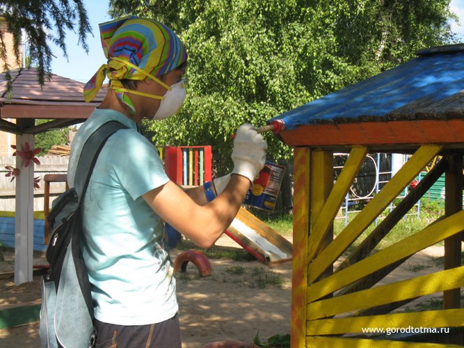 Подростки занимались покраской заборов, детских площадок, веранд, переноской мебели, благоустройством песочниц в детских садах «Незабудка», «Кораблик», «Росинка». Оказали помощь Дому детского творчества: покрасили детский городок, забор, скамейки, почистили клумбы. В парке Борцов за свободу подстригали декоративную траву. Ребята разобрали старый хоккейный корт – в скором времени здесь начнётся строительство нового. Дети убирали мусор на берегу Сухоны. Все трудились сплочённо, не отлынивали от дел. Девушки оказывали помощь сотрудникам отдела судебных приставов по Тотемскому району и добросовестно выполняли их поручения, за что были награждены благодарственными письмами.