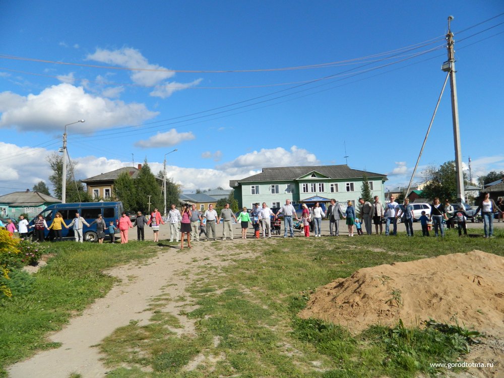 Участников флэшмоба поддержал и поздравил глава Тотемского муниципального района Сергей СЕЛЯНИН, начальник отдела по туризму Наталия ТРОФИМОВА, заместитель директора Тотемского музейного объединения Наталья КОРЕНЕВА.