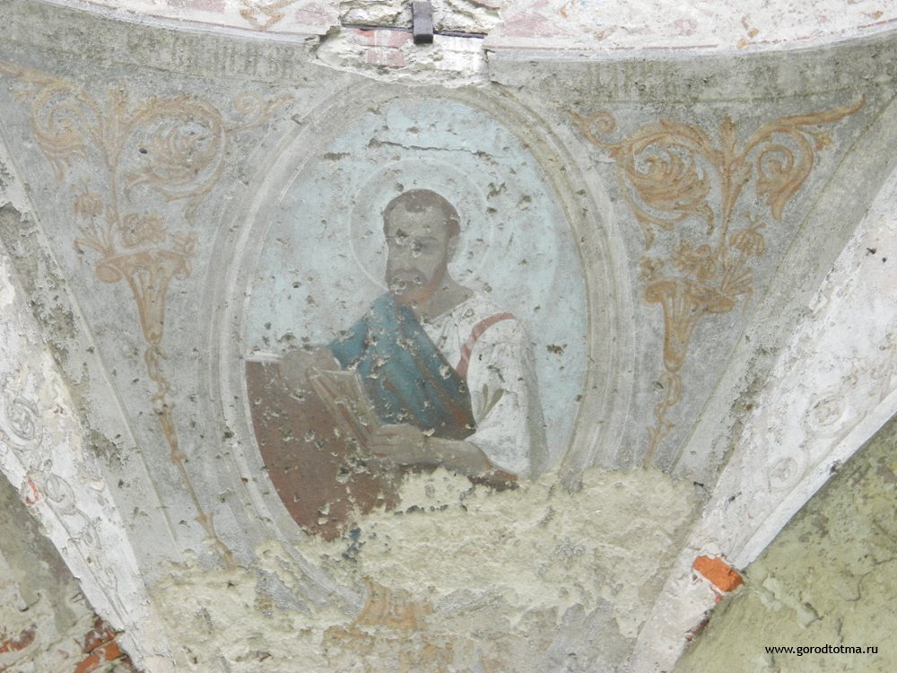 Местные жители говорят, что остатки церкви, где сохранились настенные росписи, пытались разрушить с помощью тракторов – растискивали в разные стороны, но не смогли. Так и стоит остов с каменной пристройкой.