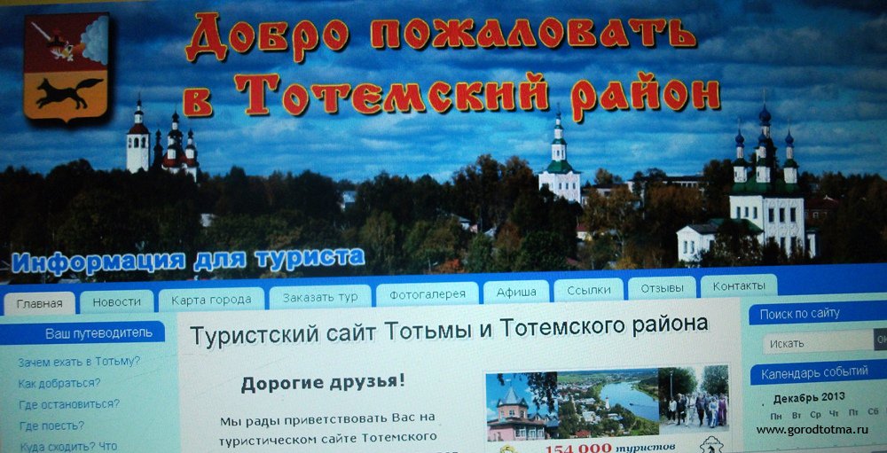 Сайт «Туризм-Тотьма», http://tourizm-totma.site/, нацелен на то, чтобы более полно представить Тотьму в интернете, ведь именно здесь современный человек получает первую информацию о путешествии, туристических маршрутах и выбирает место отдыха. По предварительной оценке специалистов департамента туризма, межрегиональных и международных связей сайт «Туризм-Тотьма» является лучшим туристическим сайтом в области.