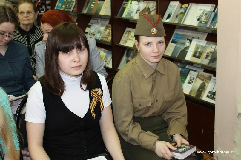 Собравшихся поздравили директор библиотеки Нина Никулинская и руководитель литературного объединения «Тотьмяне» Ирина Рычкова. Затаив дыхание, зрители слушали военные песни в исполнении Яны Романовой.