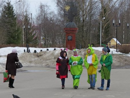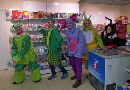 Вчера, 1 апреля, тотьмичи были немало удивлены появлению в центре города, магазинах и офисах ярких сказочных гостей. Артисты ДК "Варницы" решили отметить День смеха – 1 апреля – необычным способом: уйти от розыгрышей и порадовать земляков, подарив им радость и веселье. Улыбки на лицах прохожих и всех, к кому в гости заглянули персонажи известного детского мультсериала «Лунтик и его друзья», были обеспечены!