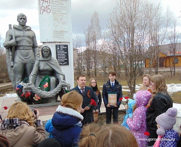 16 апреля в рамках областной акции «Вахта памяти» во всех образовательных организациях Тотемского района прошли торжественные линейки, классные часы, Уроки Победы, посвященные 70-летию Победы в Великой Отечественной войне, состоялось возложение цветов к памятнику тотьмичам – участникам Великой Отечественной войны, памятному камню в Алее Памяти Тотемская средней школы №2.