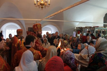 В храме Рождества Христова, где состоялась Божественная литургия в день праздника иконы Божией Матери «Живоносный Источник», владыка Вологодской епархии раздал прихожанам Благодатный Огонь, который привезён на Вологодчину из Иерусалима.