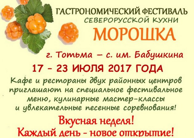 ГАСТРОНОМИЧЕСКИЙ ФЕСТИВАЛЬ ТРАДИЦИОННОЙ СЕВЕРОРУССКОЙ КУХНИ «МОРОШКА» 17 – 23 ИЮЛЯ