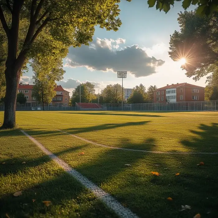 Многофункциональная игровая зона для футбола, волейбола и баскетбола. Особое внимание уделили безопасности: покрытие выполнено из травмобезопасной резины, что снижает риск повреждений при активных играх.
